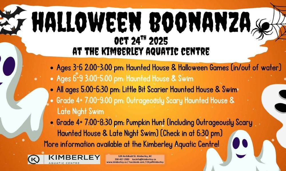 Image Home Community & Recreation Culture Festivals & Special Events Halloween Boonanza at the Aquatic Centre October 24, 2025 - 2:00 pm - October 24, 2025 - 9:00 pm